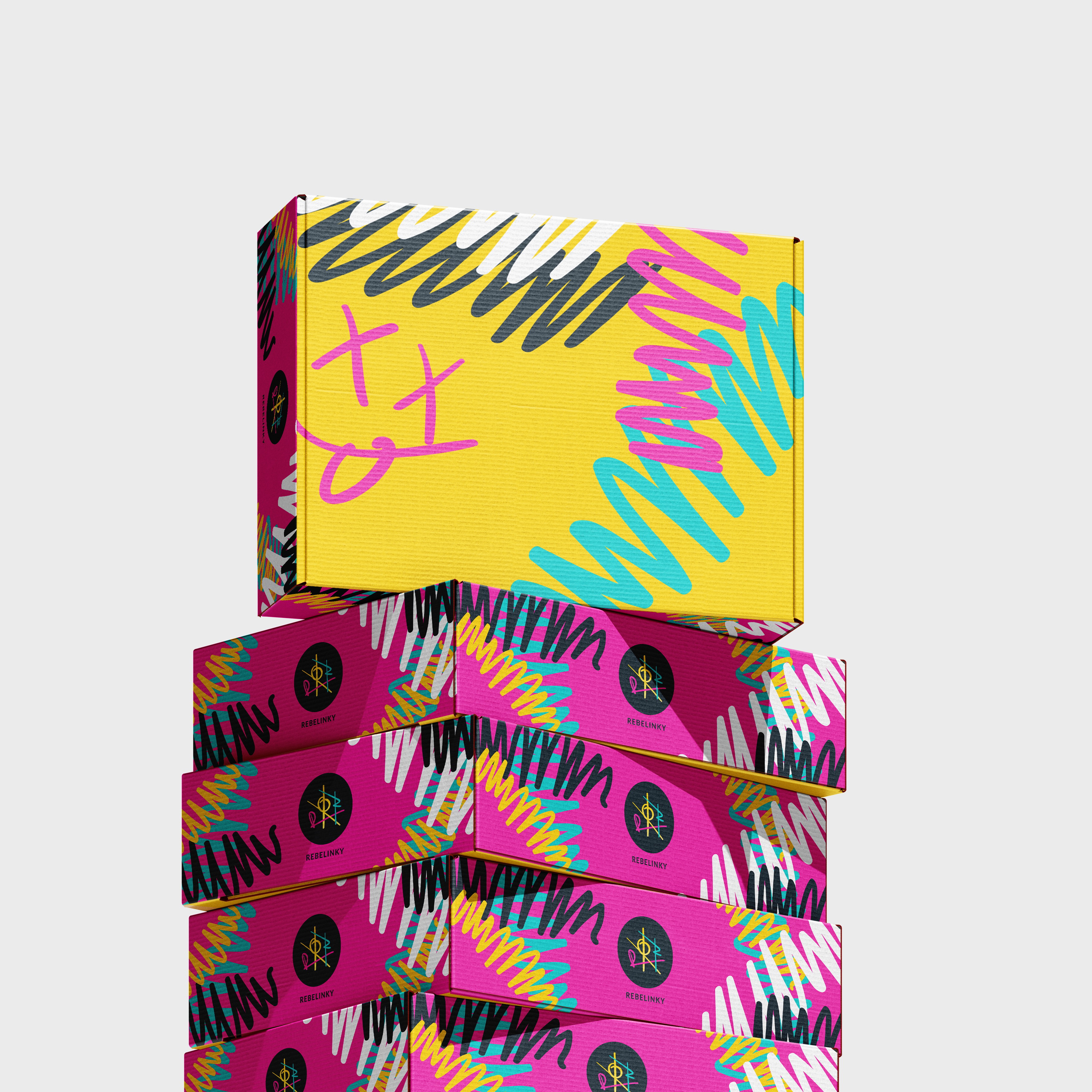 Ukázka Rebelinkových obalů, bannerů, sešitů, krabic...